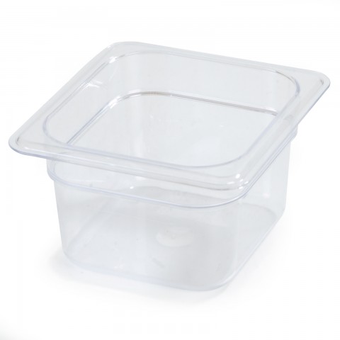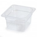 StorPlus™ Food Pan, 1/6 size, 1.7 qt. capacity, 6-3/4" x 6-22/25" x 4" deep, capacity indicators, reinforced corners, textured non-slip finish, temperature range: -40° to 212° F, dishwasher safe, polycarbonate, clear, NSF, Made in USA, meets EN631-1 Euro Norm standards