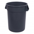Bronco™ Waste Container, 32 gallon, 27-3/4"H x 22-3/8" dia. (25-1/2" dia. with handles), round, double-reinforced stress ribs, ergonomic Comfort Curve™ handles, drag skids, deep hand holds on base, polyethylene, gray, NSF, Made in USA