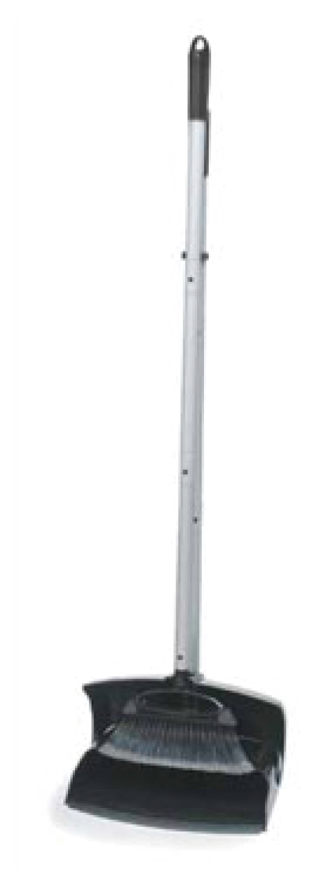 Duo-Pan™ II Lobby Pan & Broom Combo, 30" three-piece handle, broom handle clip, adjustable position head, pivoting hanging hole, pivot/lock/release bail pan, plastic, black