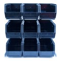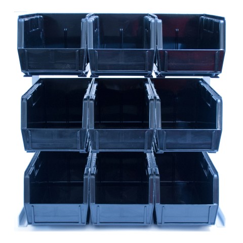 Condiment Packet Rack, 18"L x 12"W x 19"H, (9) 3-1/2 qt. plastic containers, front mount drop-in card holder, 31 common label cards, use on counter or wall-mount (screws included), aluminum frame, black