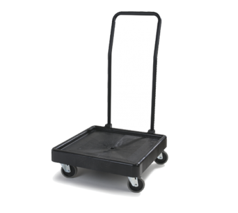 Opticlean™ Glass Rack Dolly, 350 lb. capacity, with push handle, platform design with drain feature, single-stack, accommodates standard full-size racks, (4) 4" ball bearing swivel casters with non-marking rubber wheels, polypropylene, black