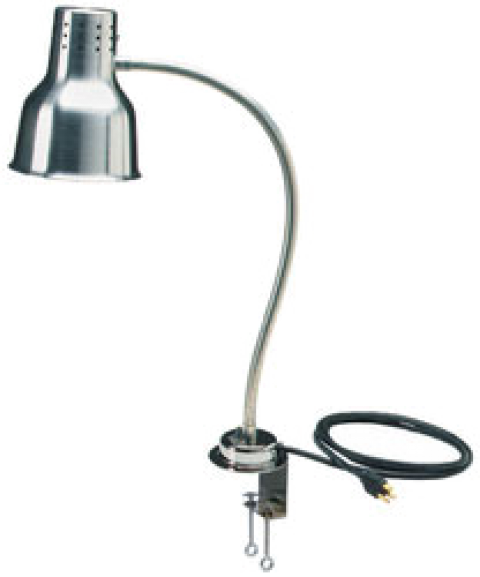 Flexiglow™ Heat Lamp, counter mount, single, 24" vinyl-coated flex arm, 4" dia. base, flared rim perforated shade, (1) 250 watt red bulb, clamp, aluminum, 110-120v/60/1-ph, NSF, UL