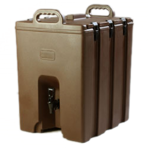 Cateraide™ LD Beverage Server, 10 gallon, insulated, Nylex II™ latches mounted into steel reinforced plates, convex lid, O-ring seal, spring action drip-less faucet, easy-grip formed handles, stain & scratch-resistant, stackable, polyethylene, brown, NSF