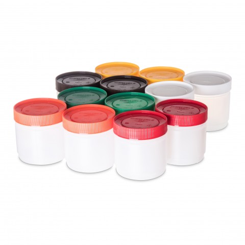 Store 'N Pour® Pint Backup, 16 oz., container and cap, break-resistant, dishwasher safe, polyethylene, assorted colors, BPA Free (priced per each, packed 2 of each color: clear, yellow, brown, orange, red and green)