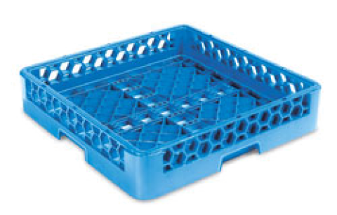 OptiClean™ Dishwasher Open/Bowl Rack, full size, inside height of 3.25", open bottom, comfort curve handles, double wall construction, BPA free, polypropylene, textured finish, blue, NSF, Made in USA