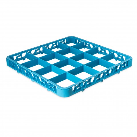 OptiClean™ Divided Glass Rack Extender, full-size, 16-compartments (4-7/16" x 4-7/16"), positive stacking, four-way tracking, double-wall reinforced polypropylene, textured finish, blue, NSF