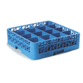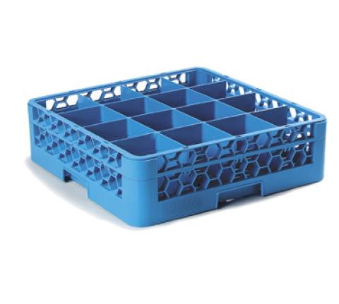 OptiClean™ Dishwasher Glass Rack, 16-compartments (4-7/16" x 4-7/16") with (1) extender, full-size, holds glasses up to 4-3/16" in diameter inside height of 5", double-wall construction, quick draining, positive stacking, four-way tracking, comfort curve handles on all 4 sides, polypropylene, textured finish, blue, NSF, NSF