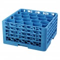 OptiClean™ NeWave™ Dishwasher Glass Rack, 20-rounded compartments with (4) Sure-Lock extenders, full-size, holds glasses up to 3-9/16" in diameter with inside height of 10-1/4", double-wall construction, quick draining, positive stacking, four-way tracking, comfort curve handles on all 4 sides, polypropylene, textured finish, blue, NSF, BPA Free, Made in USA