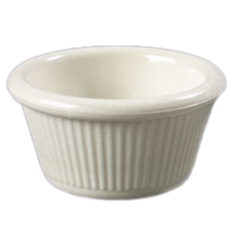 Ramekin, 2 oz., 2-13/16" dia., fluted, dishwasher safe, stain resistant, safe for temperatures up to 212°F, stackable, melamine, bone, NSF, BPA Free