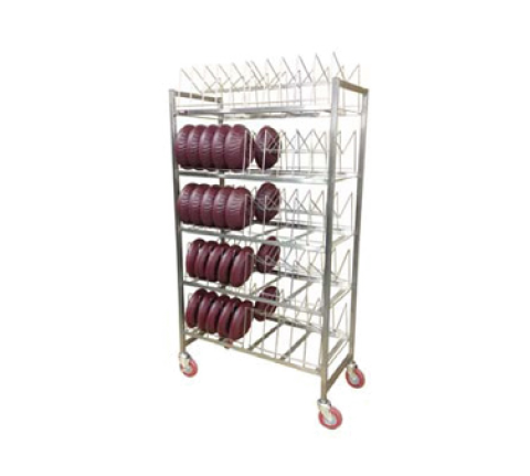 Dome Drying Rack; stainless steel construction with removable wire caddy; capacity 80 domes or 160 underliners