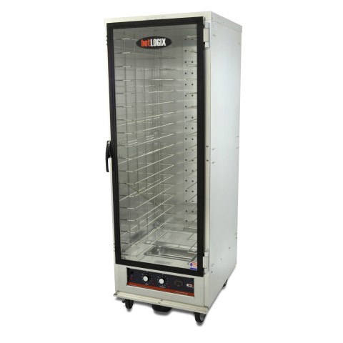 hotLOGIX Humidified Holding Cabinet/Heater Proofer-HL2 Series, one compartment, full height, non-insulated, (36) 12" x 20" or (18) 18" x 26" pan capacity, 3" fixed wire universal slides, (1) single pane tempered glass door, bottom-mount forced air heat with water reservoir, mechanical controls, digital thermometer, aluminum construction, (4) 5" swivel casters (2 with brakes), ETL, ETL-Sanitation (RapidShip)