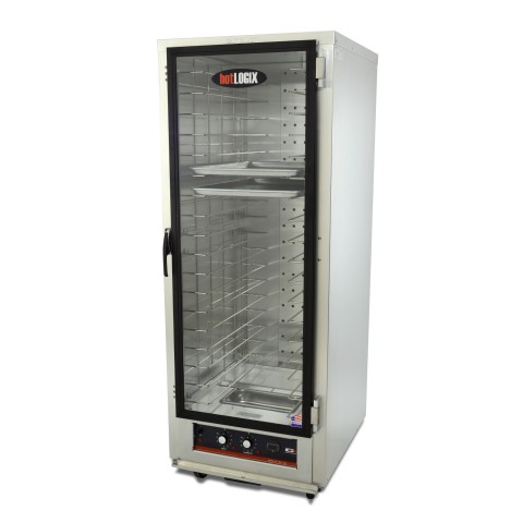 (MIDDLEBY ESSENTIALS ITEM) hotLOGIX Humidified Holding Cabinet/Heater Proofer-HL4 Series, one compartment, full height, insulated, (36) 12" x 20" or (18) 18" x 26" pan capacity, 3" fixed wire universal slides, (1) single pane tempered glass door, bottom-mount forced air heat with water reservoir, mechanical controls, aluminum construction, (4) 5" swivel casters (2 with brakes), ETL, ETL-Sanitation (RapidShip)
