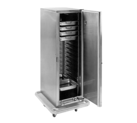 Heated Cabinet, mobile, 1 door, insulated, removable bottom mounted forced-air heating system, removable slides for (16) 12"x 20" pans, slides on 2-3/4" centers, stainless steel construction, wrap-around bumper, 5" swivel casters, cUL, UL EPH, CE