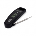 Digital Folding Thermometer, -58 to +572°F (-50 to +300°C), 4-second response, 1.7mm thin tip, 3-3/8" (8.6cm) stem, high heat, shatterproof, expanded range, data-hold, big digit, temperature guide on thermometer, hold locks reading, IPX6 waterproof rating, food-safe ABS plastic, 304 stainless steel stem, black, NSF