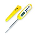 Thin Tip Pocket Thermometer, -40 to +450°F (-40 to +230°C), 6 second response, 7/8"W x 5/16"H (2.2 x 0.8cm) display, 1.5mm thin tip, 2-3/4" (7.0cm) stem, field calibration, waterproof, high heat, shatterproof, expanded range, data-hold, big digit, temperature guide on thermometer, on/off button, auto-off after 10 minutes, sheath can be used as handle extension, pocket clip/hook, requires (1) LR44 battery (included), food-safe ABS plastic with BioCote®, 304 stainless steel stem, yellow, NSF