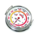 Grill Surface Thermometer, 100 to 800°F (40 to 425°C), 2-1/4" (5.7cm) diameter dial, high heat, shatterproof, place directly on grill, target range indication, color-coded scale, laboratory glass lens, stainless steel housing, NSF