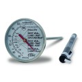 Meat/Poultry Ovenproof Thermometer, Fahrenheit reading, 130° to 190°F (50 to 90°C), 1-3/4" (4.4cm) dial, 5" (12.7cm) stem, ovenproof, target range indication, field recalibration, temperature guide on thermometer, sheath can be used as handle extension, pocket clip, laboratory glass lens, food-safe ABS plastic with BioCote® on sheath, 304 stainless steel housing, NSF