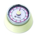 Compact Mechanical Timer, 1 hours by min, 2" (5-1/10 cm) diameter face, counts down, 3-sec long alarm, ABS plastic face, 430 stainless steel housing, non-slip rubber magnet, white