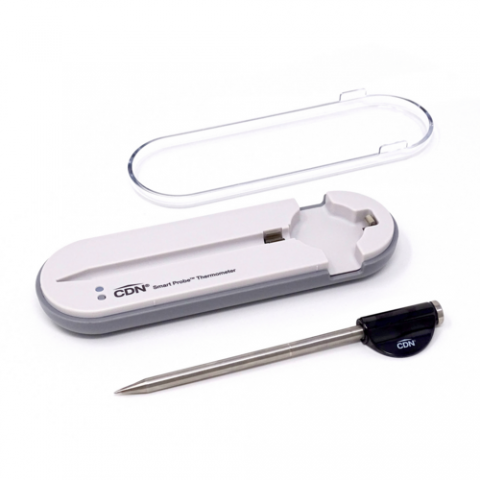 Smart Probe™ Thermometer, Internal: 14 to 212°F/-10 to 100°C Ambient: 14 to 572°F/-10 to 300°C, remote monitoring through Bluetooth® Smart Ready mobile devices, wireless range up to 165 feet, 24 hours on full charge, 5.4-inch stainless steel probe is waterproof (IP67) & dishwasher safe