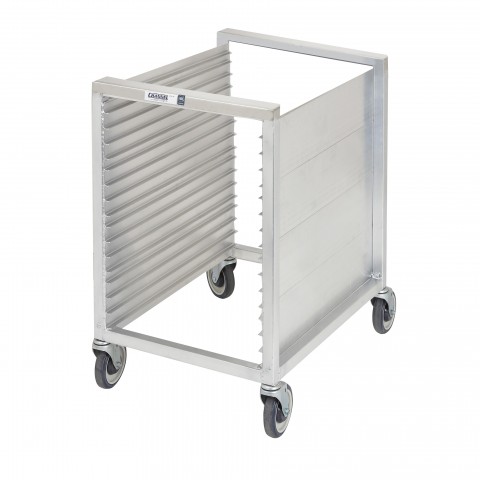 Bun Pan Rack, Enclosed Cabinets, Semi-Enclosed, 21"W x 26"D x 33"H, Aluminum Construction, End Load, 1.5" Extrusion Spacing, (16) 18" x 26" or (32) 13" x 18" pans (2 per shelf), 5" Swivel Stem Casters model # CSS45O, NSF, 33lbs. (ITEM WEIGHT ONLY), weight does not include 50 lbs. for pallet weight