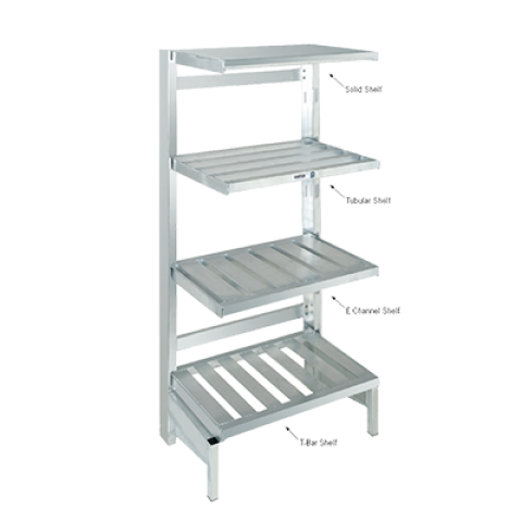 Shelving, Cantilever Shelving, T-Bar, 60"W x 24"D x 72"H, Aluminum Construction, (900) lb. distributed weight capacity per shelf, Made in USA, NSF, 20lbs. (ITEM WEIGHT ONLY), Cross Supports (set of 2), Left (CSURL), Right (CSURC) and Common (CSURR) uprights sold separately, weight does not include 50 lbs. for pallet weight