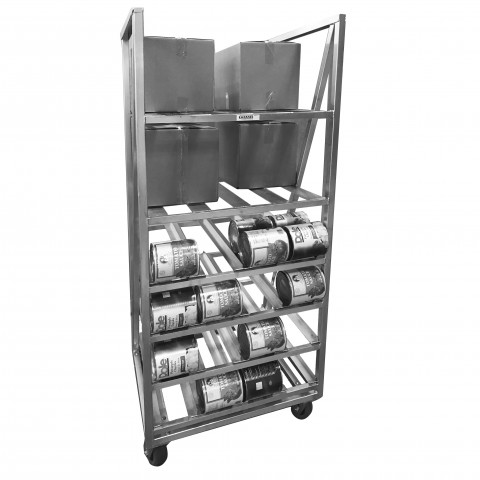 Can Rack, Can And Storage Rack, Mobile, 33.25"W x 28"D x 82.25"H, Aluminum Construction, (80) #10 Cans, 5" x 2" Heavy-Duty Swivel Plate Casters w/ Zerk Grease Fitting model # CPS25U, Made in USA, NSF, 115lbs. (ITEM WEIGHT ONLY), weight does not include 50 lbs. for pallet weight