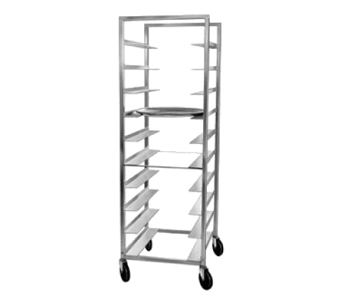 Glass / Oval Tray Rack, Oval Tray Rack, Single Section, 25"W x 26"D x 36"H, Aluminum Construction, 8" Angle Spacing, (4) 22" x 27" oval trays, 5" Swivel Stem Casters model # CSS55PU, Made in USA, NSF, 20lbs. (ITEM WEIGHT ONLY), extra wide 3.25" tray slides, weight does not include 50 lbs. for pallet weight