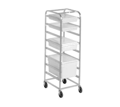 Poly Box Rack, Poly Box Rack, 20.5"W x 26"D x 70"H, Aluminum Construction, 7.5" Angle Spacing, (8) poly boxes (poly box height determines capacity), 5" Swivel Stem Casters model # CSS45O, Made in USA, NSF, 27lbs. (ITEM WEIGHT ONLY), weight does not include 50 lbs. for pallet weight
