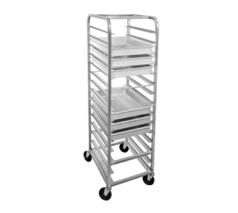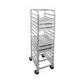 Pizza Equipment, Pizza Pan / Dough Box Rack, Dough Box Rack, 21"W x 26"D x 64"H, Aluminum Construction, End Load, 4" Angle Spacing, (13) 17" to 19" round or 16" to 17" square pizza pans, 5" Swivel Stem Casters model # CSS45O, Made in USA, NSF, 30lbs. (ITEM WEIGHT ONLY), weight does not include 50 lbs. for pallet weight