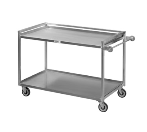 Banquet / Utility Cart, Heavy-Duty Utility / Bussing Cart, 37"W x 29"D x 36"H, Aluminum Construction, (2) shelves, 5" Swivel Plate Casters model # CPS45U, Made in USA, NSF, 42lbs. (ITEM WEIGHT ONLY), 500 lb. distributed weight capacity, push handle, weight does not include 50 lbs. for pallet weight