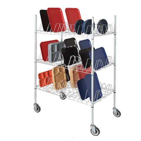 Glass / Oval Tray Rack, Tray Drying Racks – Mobile, 44"W x 25.5"D x 70.5"H, Wire Construction, 2.75" Slots, (3) shelves, (45) trays, 5" Swivel Stem Casters model # CTS45U, NSF, 110lbs. (ITEM WEIGHT ONLY), holds dome covers, ships knocked down, weight does not include 50 lbs. for pallet weight