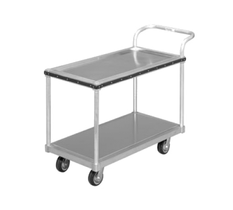 Produce Cart, Wet Produce Cart, 22.75"W x 49"D x 37.5"H, Aluminum Construction, 5" Swivel Plate Casters model # CPS45U, Made in USA, 56lbs. (ITEM WEIGHT ONLY), reversible and removeable top and bottom pan shelves, full perimeter bumper around top shelf, weight does not include 50 lbs. for pallet weight