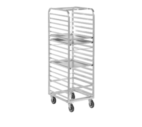 Bun Pan Rack, Walk-In, Stainless Series, 20.5"W x 26"D x 64"H, Stainless Steel Construction, End Load, 5" Angle Spacing, (11) 18" x 26" or (22) 13" x 18" pans (2 per shelf), 5" Swivel Plate Casters model # CPS45U, Made in USA, NSF, 40lbs. (ITEM WEIGHT ONLY), weight does not include 50 lbs. for pallet weight