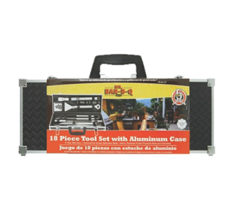 Mr. Bar-B-Q® Platinum Prestige Barbeque Tool Set, (18) piece, includes: 4-in-1 spatula, fork, tongs, basting brush, (8) corn holders, (4) skewers & knife, stainless steel, aluminum & black carrying case Lifetime Warranty (must be purchased in case quantities)