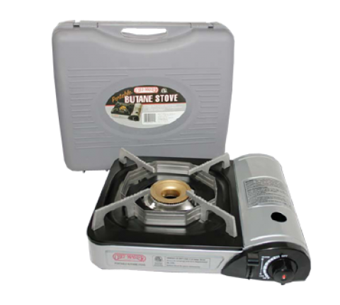 Chef-Master™ Butane Stove, portable, for indoor use in commercial restaurants, adjustable heat range from boil to simmer, in-line regulator with pressure sensing shut off, automatic piezo electric ignition, heat transfer plate, high impact carrying case, 10,000 BTU/hr, ETL Certified (must be purchased in case quantities)