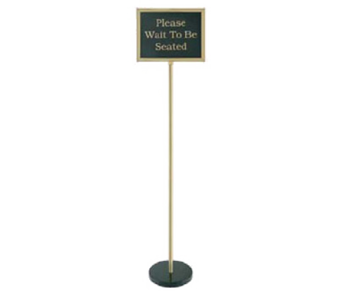 Chef-Master™ Teller Sign, 60"H, (8) double sided 11" x 14" P.V.C. signs with 15 gold silk screened messages & 1 blank, signs store within frame, aluminum frame, steel pole, steel base, brass finish (must be purchased in case quantities)