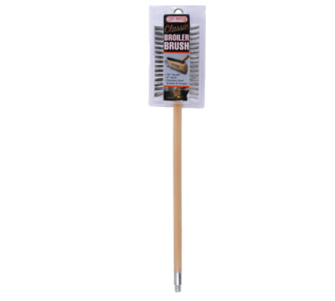 Chef-Master™ Classic Broiler Brush, 30" handle, 8" head, double crimped, stainless steel bristles & scraper, double crimpled collar, wooden head * handle (must be purchased in case quantities)