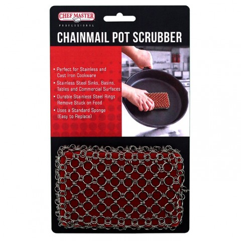 Chef Master™ Chainmail Pot Scrubber, replaceable sponge, stainless steel rings (must be purchased in case quantities)