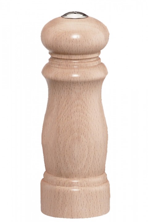 (062551) Chef Professional Salem Salt/Pepper Shaker, 6" high, wood, rubber plug, stainless steel shaker cap, Made in USA, lifetime warranty, natural finish