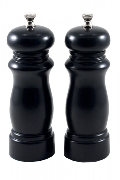 (063022) Chef Professional Series Salem Salt Mill/Pepper Mill Set, 6" high, ebony finish, stainless steel pepper grinder, ceramic salt grinding mechanism, Made in USA, lifetime warranty