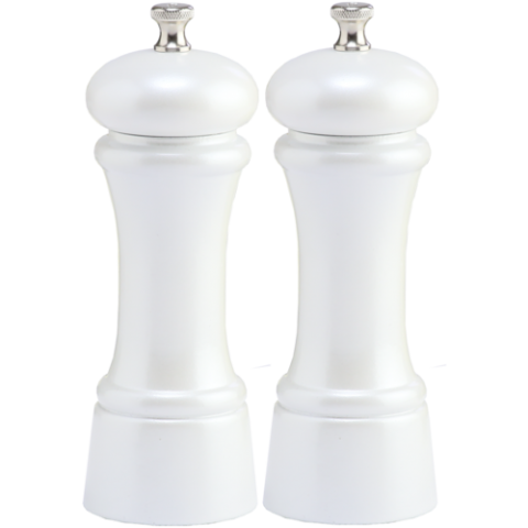 (068027) Chef Professional Series Elegance Salt Mill/Pepper Mill Set, 6" high, Pearl Metallic finish, stainless steel pepper grinder, ceramic salt grinding mechanism, Made in USA, lifetime warranty