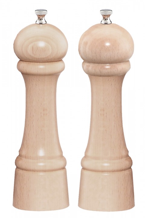 (082023) Chef Professional Series Windsor Salt Mill/Pepper Mill Set, 8" high, natural finish, stainless steel pepper grinder, Made in USA, lifetime warranty