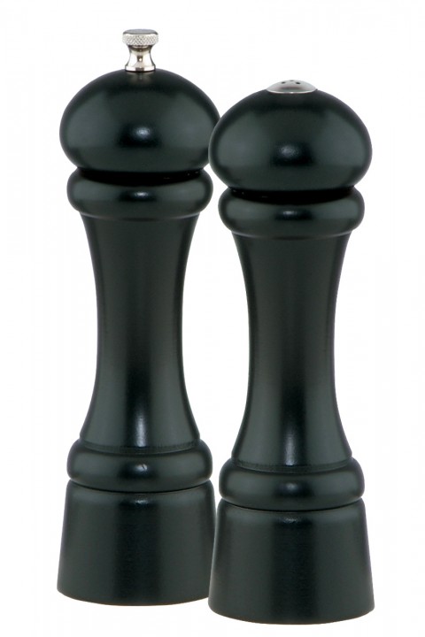 (083013) Chef Professional Series Windsor Salt Shaker/Pepper Mill Set, 8" high, ebony finish, stainless steel grinding mechanism, Made in USA, lifetime warranty