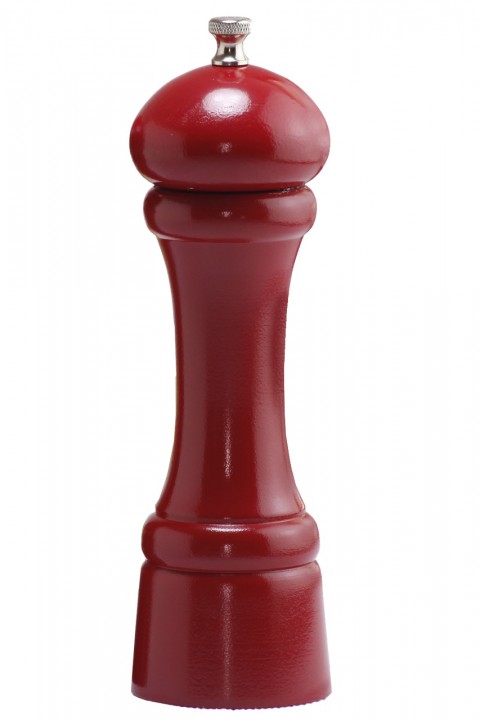 (086519) Autumn Hues Professional Pepper Mill, 8" high, wood, tempered stainless steel gear, candy apple red, Made in USA, lifetime warranty