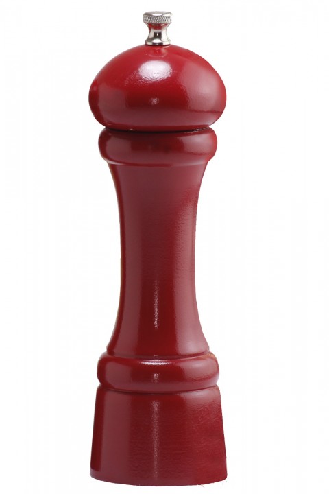 (086526) Autumn Hues Professional Salt Mill, 8" high, wood, ceramic grinding mechanism, Made in USA, lifetime warranty, candy apple red