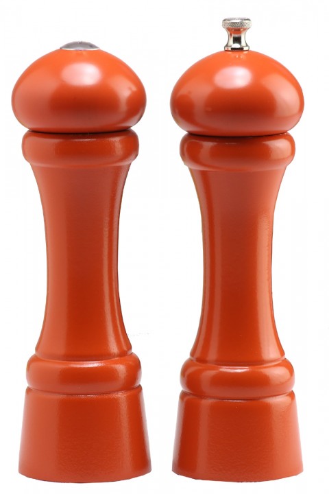 (089008) Autumn Hues Professional Pepper Mill & Salt Shaker Set, 8" high, wood, tempered stainless steel gear, Made in USA, lifetime warranty, butternut orange