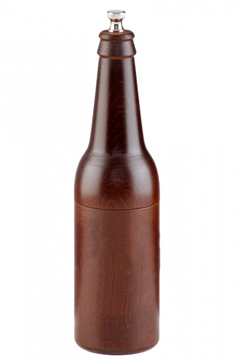 (090509) Chef Professional Series Beer Bottle Pepper Mill, 9-1/2" high, stainless steel grinding mechanism, walnut finish, lifetime warranty