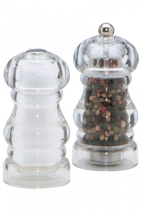 (291906) Chef Professional Series Laurel Salt/Pepper Shaker Mill Set, 5" high, clear acrylic, stainless steel grinding mechanism, "comes filled in the U.S.A", acrylic, lifetime warranty