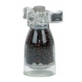 (299315) Chef Home Cookin' Series Spinner Pepper Mill, with handle top, 4-1/2" high, clear acrylic with stainless steel accents, ceramic grinding mechanism, "comes filled in the U.S.A", lifetime warranty