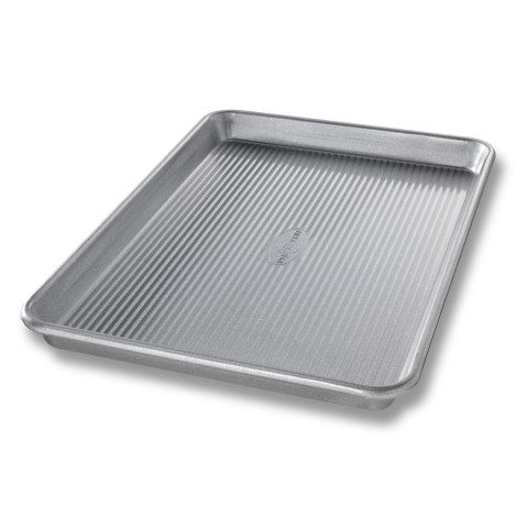 USA PAN® Jelly Roll Pan, 9-13/16" x 14-3/4" x 1", wire in rim, hand wash recommended, 22 gauge aluminized steel, AMERICOAT® ePlus silicone glaze, PFOA free, made in the USA with global materials